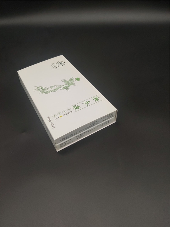 這是一款長沙保健品包裝盒,采用白卡紙印刷覆膜,做了燙金擊凸工藝,整體精致美觀,比一般藥品卡盒顯高檔。